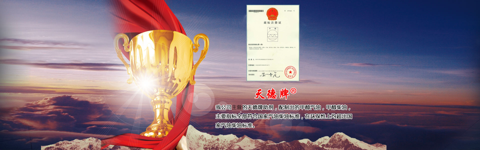 本公司主要產(chǎn)品有甲醇汽油添加劑、甲醇柴油添加劑、車用復(fù)合柴油添加劑、甲醇燃料油添加劑以及雙燃料控制器和油罐除水劑六大系列九種產(chǎn)品,具有廣闊的市場空間和經(jīng)濟效益。其中添加劑系列已在國家商標局注冊為“天德牌”,天德牌問世二十多年來,在保證產(chǎn)品質(zhì)量的同時,給廣大客戶帶來了可觀的經(jīng)濟利益,得到廣大油品行業(yè)用戶的一致好評…… 了解更多+